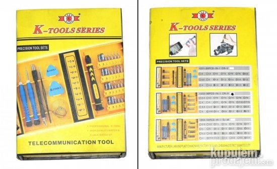 Set ukljucuje razrsne precizne bitove, koji ce sigurno odvrnuti svaki moguci sraf. Tu su i plastike za odvajanje, vakuum ruckica, pinceta.