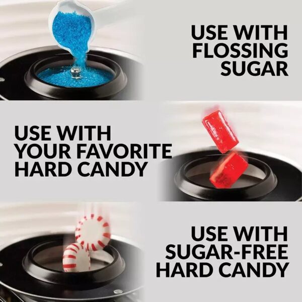 *Prema teoriji mašinskog premeštanja, u mašinu samo dodajte šećer ili granulirani šećer, nakon zagrevanja izliće u oblik pamuka. – Ima stabilne i izdržljive performanse, bez rizika, jednostavan za rad za trajnu trajnost.