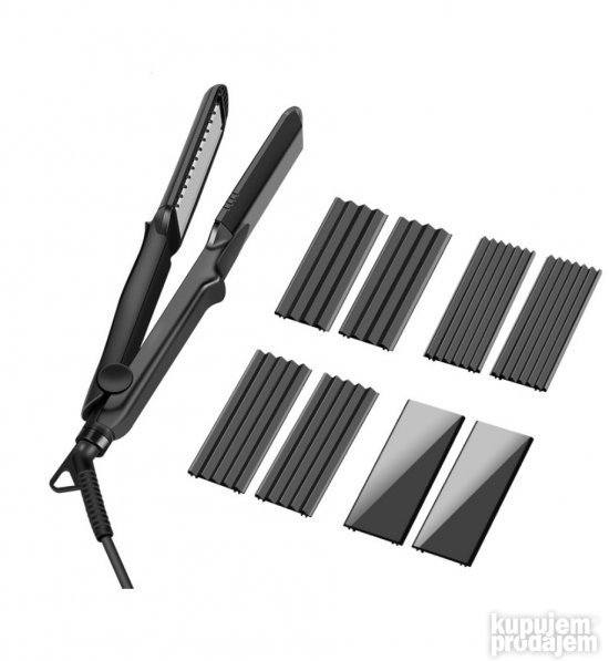 4-u-1 izmenljive ploče alat za oblikovanje kose, sadrži L talasnu ploču, M talasnu ploču, S talasnu ploču i ravnu ploču.