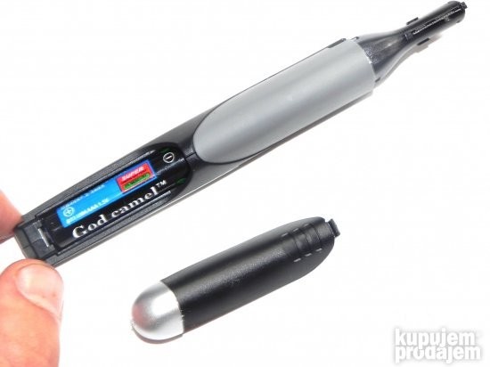 Dizajniran je tako da bude pod uglom, kako biste lakse dosegli do tesko dostupnih mesta. Koristi jednu bateriju. Uz njega idu jedan dupli cesalj i cetkica za ciscenje. Duzina: oko 13 cm. Sam trimer pokriva duzinu 1.5 cm.