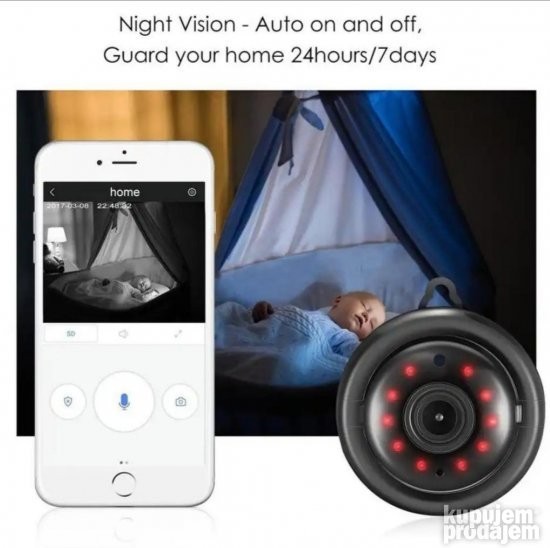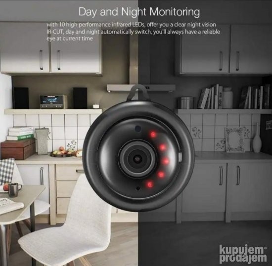 Izuzetno malih dimenzija pogodna za lako skrivanje i uklapanje u enterijer prostorija gde se nalazi. Dimenzije oko 58mm precnik velikog kruga, 35mm debljina kamere , 42mm precnik prednjeg kruga i visina neka sa kukicom za kacenje oko 66mm Kontrola na daljinu, preko mobilnog telefona. IP kamera – WiFi kamera – Kamera za video nadzor – MINI 7IP konekcija, pregled i povezivanje preko mobilnog telefona, tableta. Kontrola prostora na daljinu.