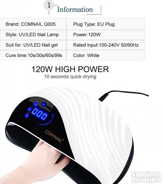 Snage : 120W-Jedna je od najprodavanijih modela od UV lampi za nokte, poznata je po visokokvalitetnoj strukturi, modernom dizajnu.